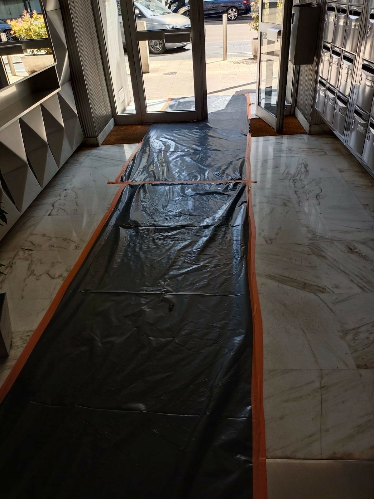 Après la protection des parties communes, les gravillons non conformes ont été évacués.